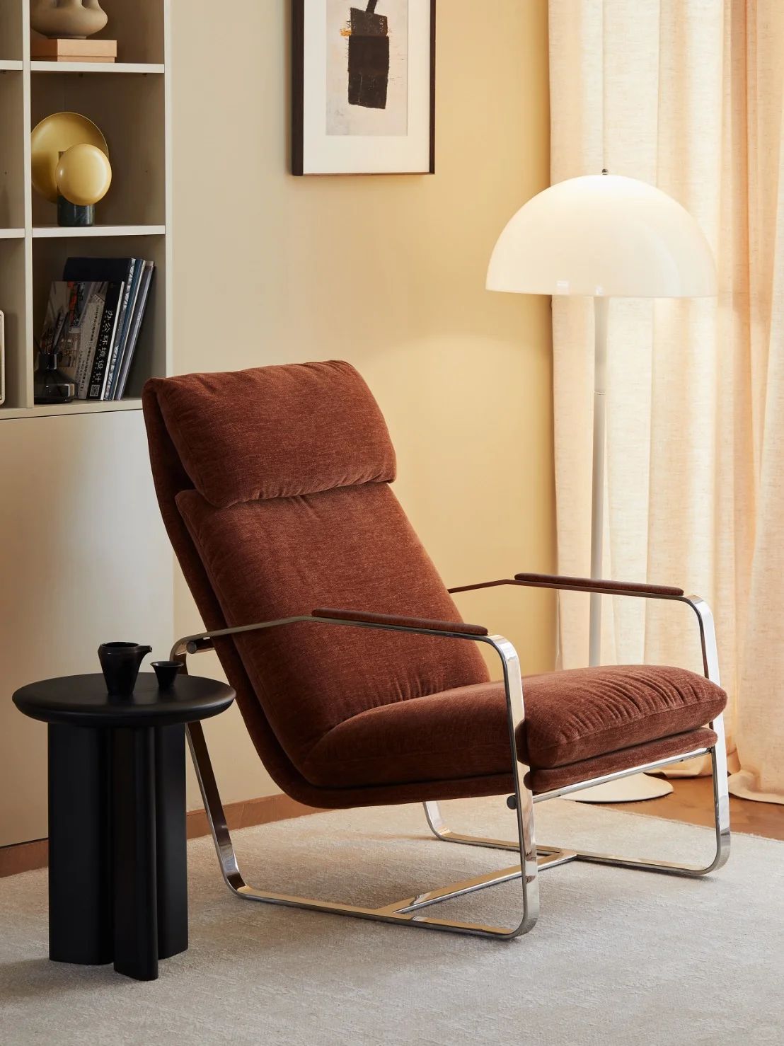 如果不想大动干戈,更简单的方法,是直接把弧形元素应用在“焦点家具”上,一件就能让整个空间都活起来。